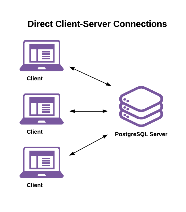 Connection pooling introduces important changes to how database connections and sessions work. To understand those changes, it’s important to first understand their normal behavior. Non-pooled connections follow a standard client-server connection architecture: